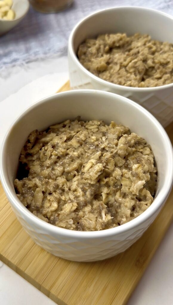 Soy milk + vanilla extract – for a creamy, sweet texture.