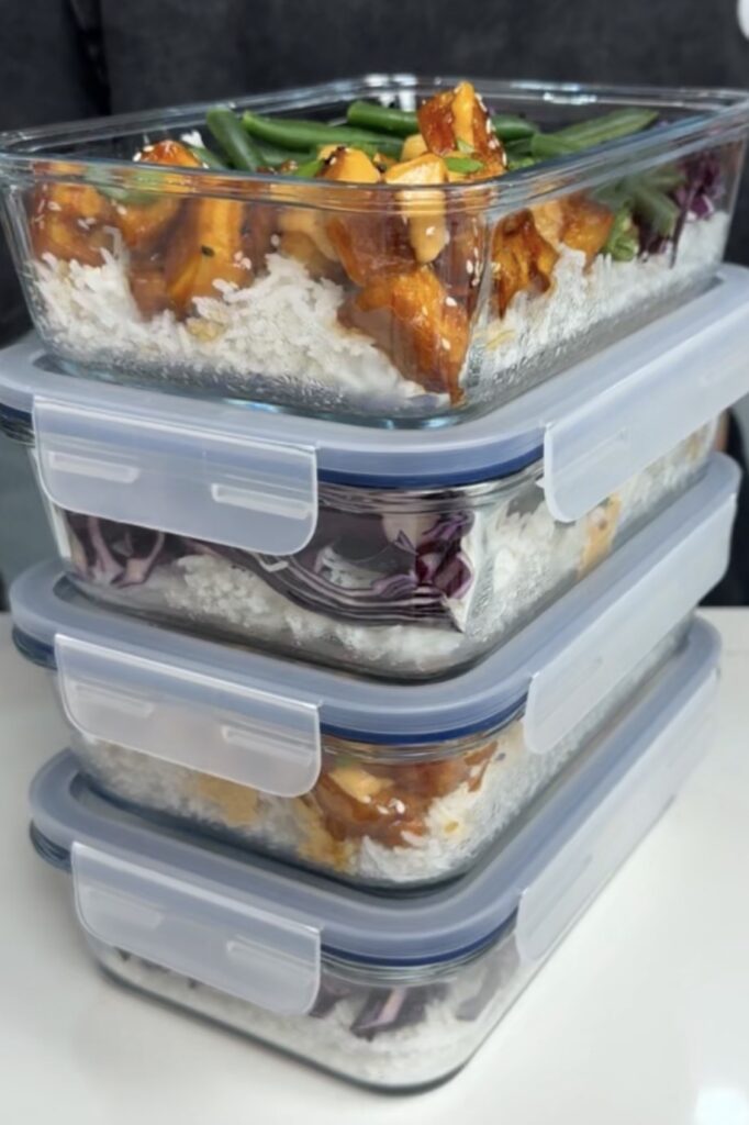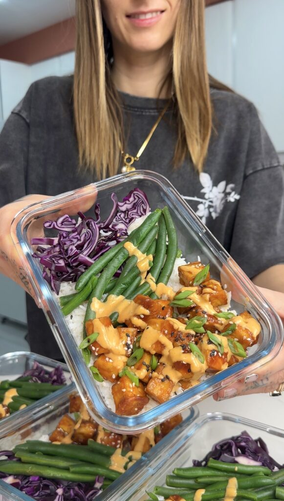 This meal prep has everything. These Korean BBQ Tofu Meal Prep bowls are packed with flavour, perfectly balanced, and honestly taste better than takeout. The tofu is coated in a sweet, savoury, slightly spicy glaze, served over fluffy basmati rice with fresh shredded cabbage, steamed green beans and a creamy Gochujang mayo drizzle on top.